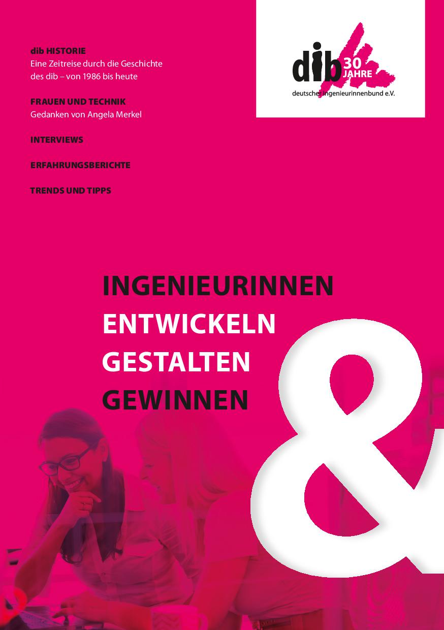 Publikation „30 Jahre deutscher ingenieurinnenbund“ (dib e.V.). Frauen in der Technik sind längst noch keine Selbstverständlichkeit. Die Unternehmen sind gefordert, das Potenzial für sich zu erschließen. In der Jubiläumsbroschüre des deutschen ingenieurinnenbundes e.V. lesen Sie Erfolgsbeispiele, Trends und Statements u.a. von Kanzlerin Angela Merkel, Ursula Schwarzenbart/Daimler, Rita Forst/ehemals Opel, Ines Kolmsee/EWE und Prof. Dr. Jivka Ovtcharova/Karlsruher Institut für Technologie).
